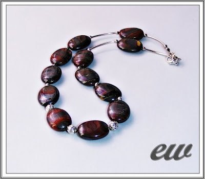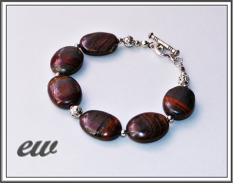 Piękny jaspis z metalicznymi smugami, bywa też nazywany tygrysim żelazem.