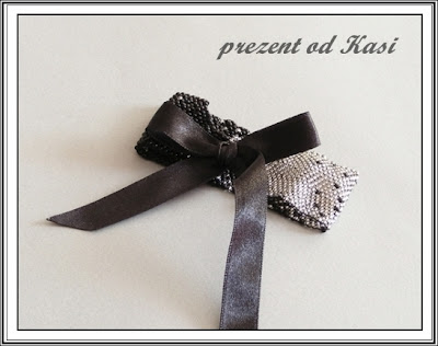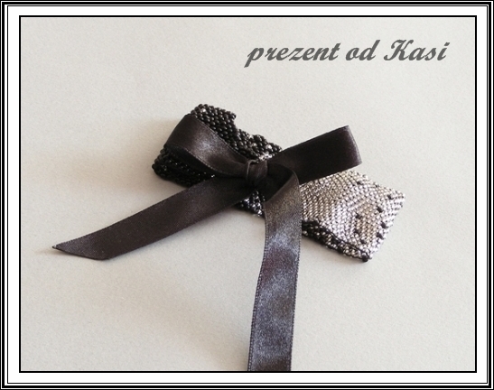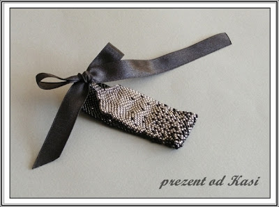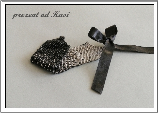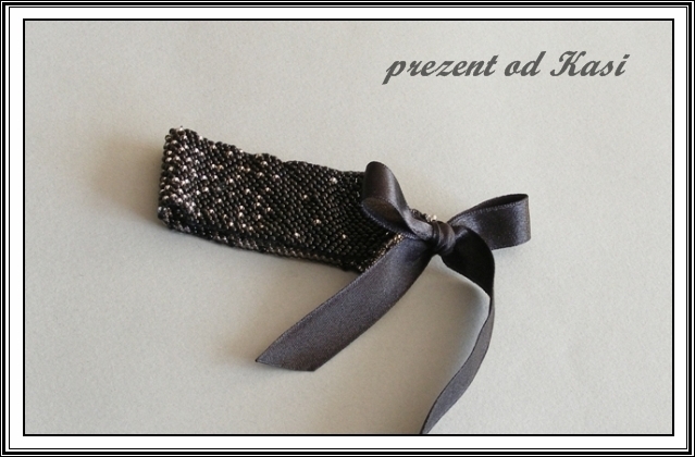 Bransoletkę musiałam zmniejszyć - dodałam wstążkę zamiast zapięcia na haczyk (ach te moje chude ręce...), ale najważniejsze widać - cudne przenikanie się kuleczek - "deszczyk".