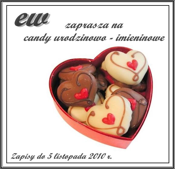 Z okazji zbliżających się moich trochę okrągłych urodzin i zaraz po nich imienin chciałabym zaprosić wszystkich odwiedzających na małe rozdawnictwo :) Przecież nie otrzymywanie prezentów, a obdarowywanie nimi jest największą radością :)