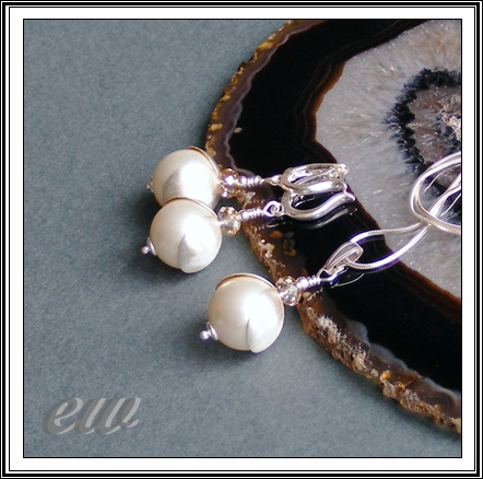 Perły 14 mm i rondelle 6 mm, srebro. Długość kolczyków 4,5 cm