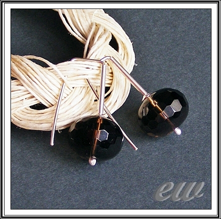 Fasetowane oponki kwarcu dymnego, wielkie, bo aż 16 na 12 mm /trochę ważą ;)/ zawieszone na srebrnych, ręcznie formowanych biglach.