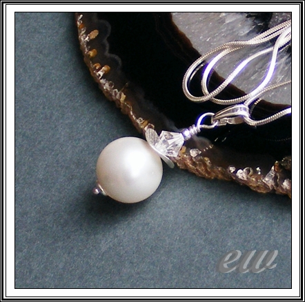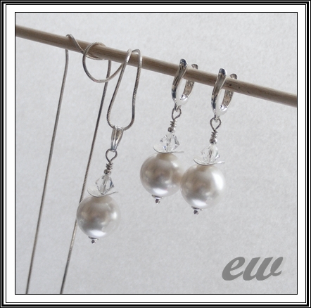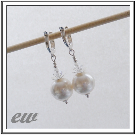 Perły 14 mm i bicone 6 mm, srebro. Długość kolczyków 4,5 cm