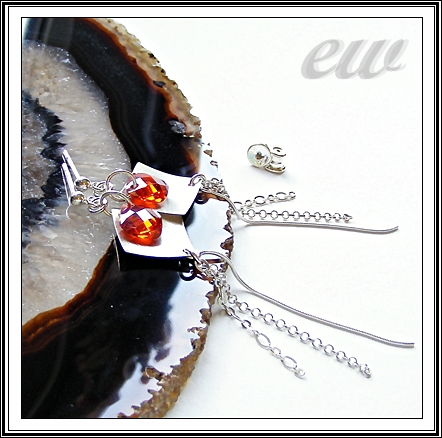 Srebrne sztyfty z maleńkimi (8/8 mm) fasetowanymi cyrkoniami w kolorze oranżowym. Bardzo długie - 8 cm.