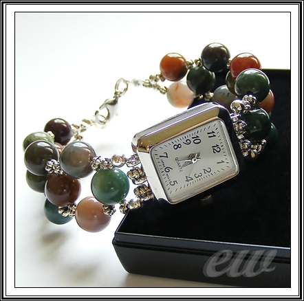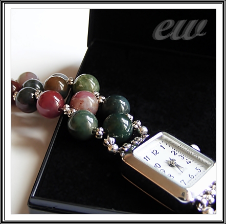 W końcu stwierdziłam, że najlepiej mu będzie w towarzystwie plecionki z jakiś ładnych kamyczków - padło na agat indiański (8 mm) i metalowe przekładki bali. Długość ok. 17 cm.