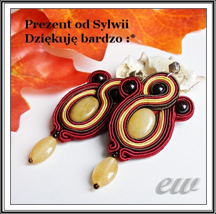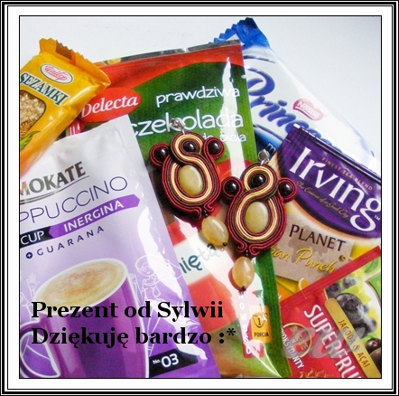 Od Sylwii dostałam cudne kolczyki sutaszowe oraz komplet herbat i innych zdatnych na jesienne wieczory napojów. Udało jej się pięknie zinterpretować moje rozbudowane hasło, a że jesień kojarzy mi się kulinarnie zawsze słodko, to myślałam o jabłkach - dojrzałych olbrzymich malinówkach