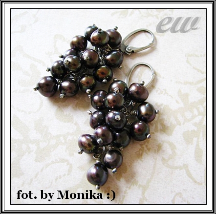 Ja natomiast wylosowałam Monikę i zrobiłam dla niej kolczyki z pereł hodowlanych, mam nadzieję, że widać, że to śliwki w czekoladzie ;) Dodatkowo także zakładkę z jaskółkami - żeby koty miały na co polować ;) W paczce nie mogło zabraknąć oczywiście śliwek w czekoladzie - smacznego :)