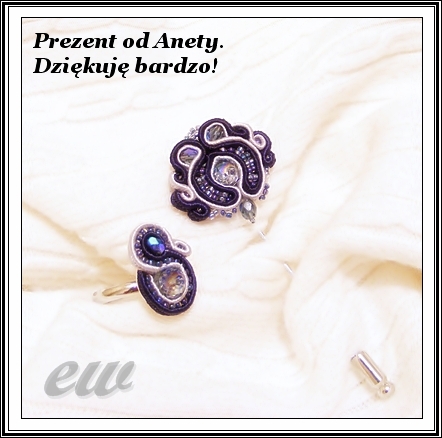 W zamian za kolczyki z korala filipińskiego dostałam piękną szpilkę i pierścionek z sutaszu. Podziwiajcie misterne dzieło Anety :)