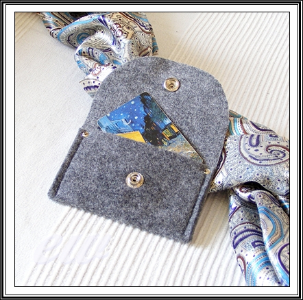 Maszyna ruszyła :) Wczoraj 'na deser' powstało z resztek takie maleństwo (12/9 cm). Nadaje się na wizytówki, ale może też być portfelikiem. Jedna komora, zapinanie na zatrzask i "wieszadełko", żeby można go było umocować, aby nie zgubić :).