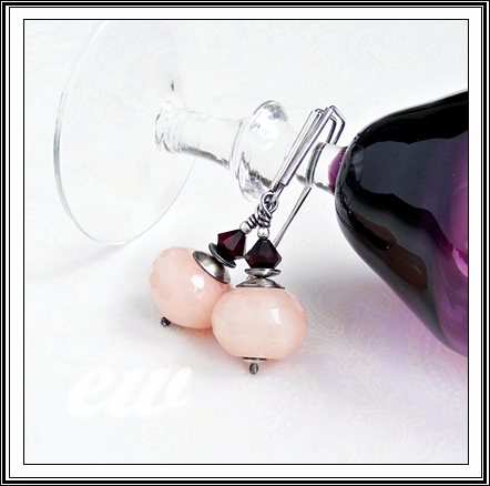 Jadeity fasetowane (16/11 mm) i kryształki swarovskiego w kolorze garnet (6 mm), a żeby nie było zbyt mdło dodałam oksydowane srebro. Długość z biglami 5 cm.