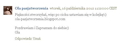 OdpowiedzUsuńGratulacje dla Oli! Dziękuję za zabawę i pozdrawiam :-) Będę zaglądać....