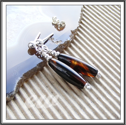 Dalej w temacie - "łowy giełdowe". Tym razem kupiłam same drobne kamienie - te oliwki agatów są długie ale wąziutkie (20/7 mm). Pierwsze powstały delikatne kolczyki z minimalnymi dodatkami. Zastanawiałam się, czy nie oksydować, ale ostatecznie pozostawiłam srebro błyszczące.