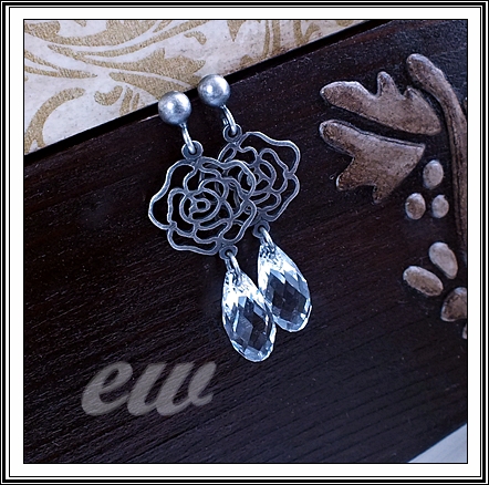 Kolejne kryształy Swarovskiego, które zapuściły u mnie korzenie. Tym razem wersja romantyczna... Prawie romantyczna, bo postanowiłam je zaoksydować - z błyszczącym srebrem wydawały mi się 'mdłe'. Może być?
