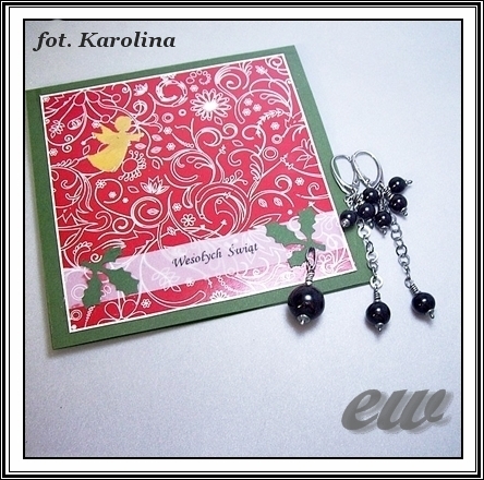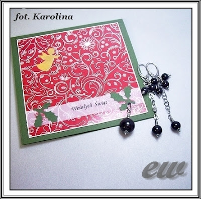 Prezent wymiankowy dla Karoliny dotarł, mogę więc ujawnić, co przygotowałam na Wizażową Wymiankę Mikołajkową :) Wg opinii na forum - niespodzianka się podobała. Do kompletu jest jeszcze zawieszka i różana bransoletka szaro czarna, ale już nie zdążyłam tego sfotografować :(